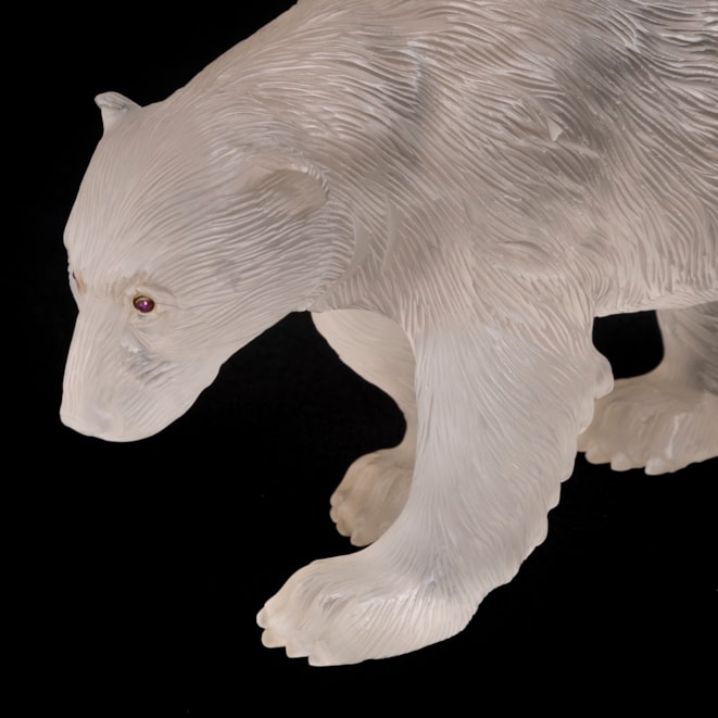 The standing polar bear carved from one piece of crystal, with inset eyes.