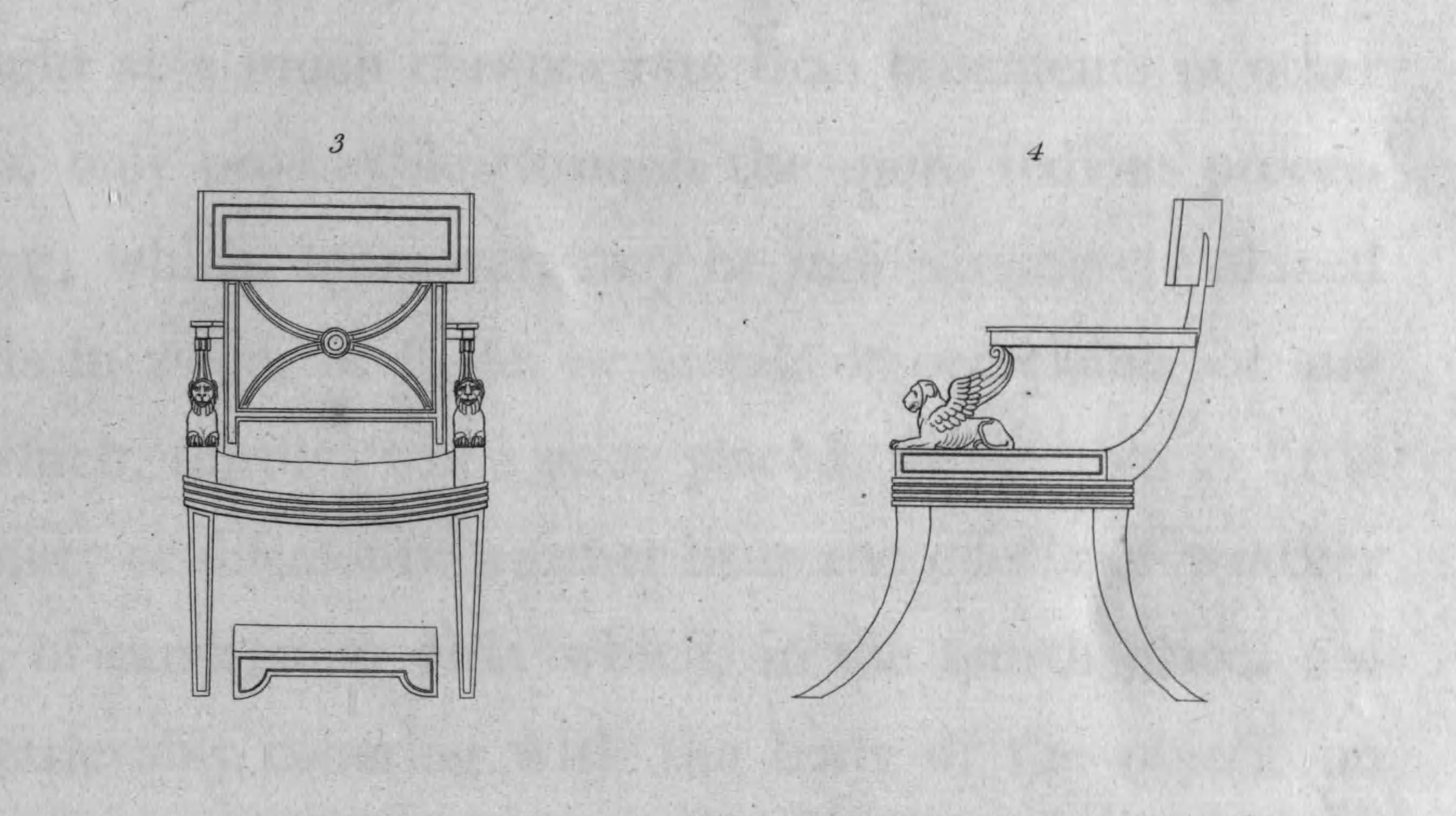 Design for a Klismos type armchair by Thomas Hope, published in 1807.