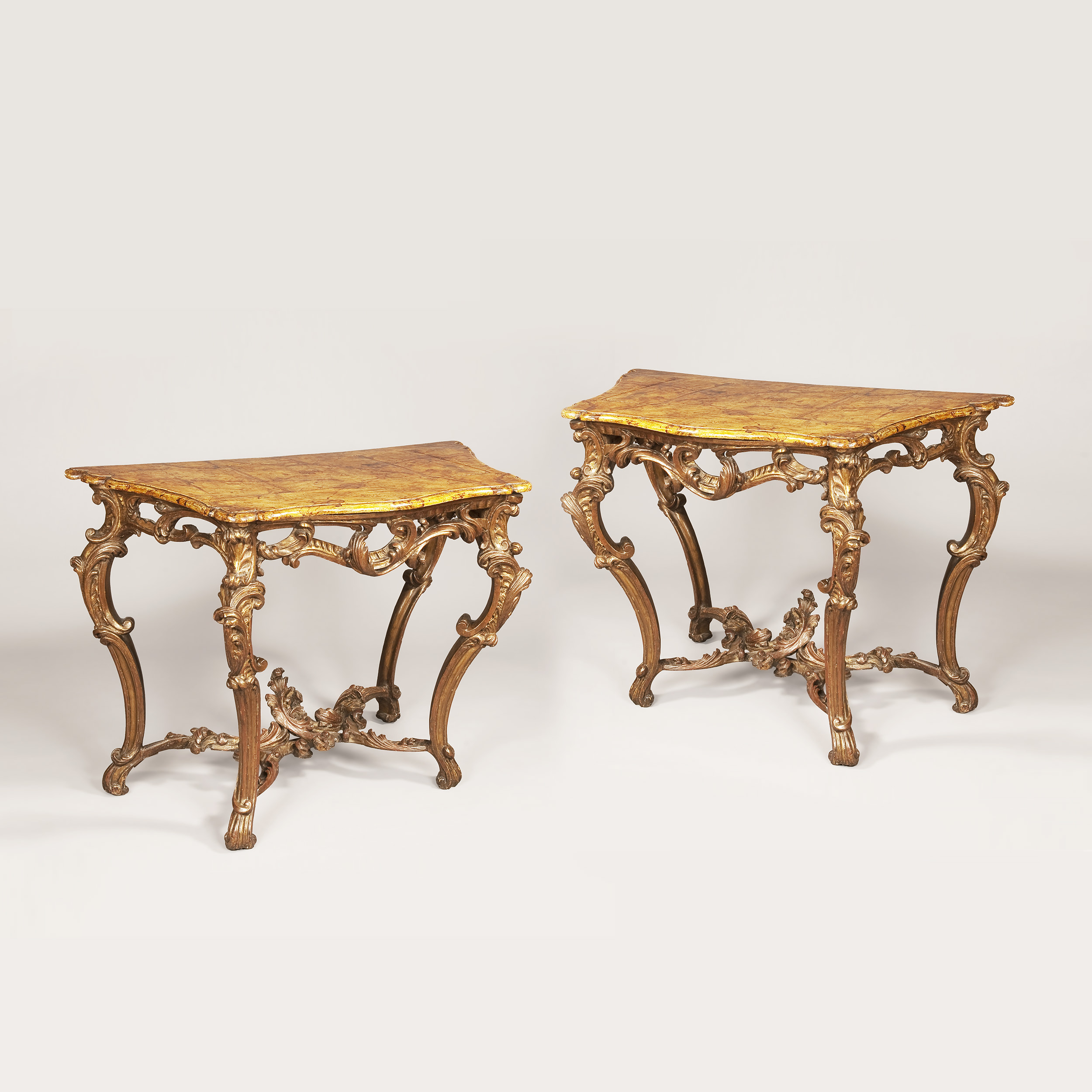 A Fine Pair of Genoese Console Tables in the Rococo Manner