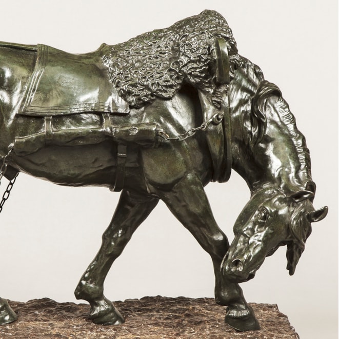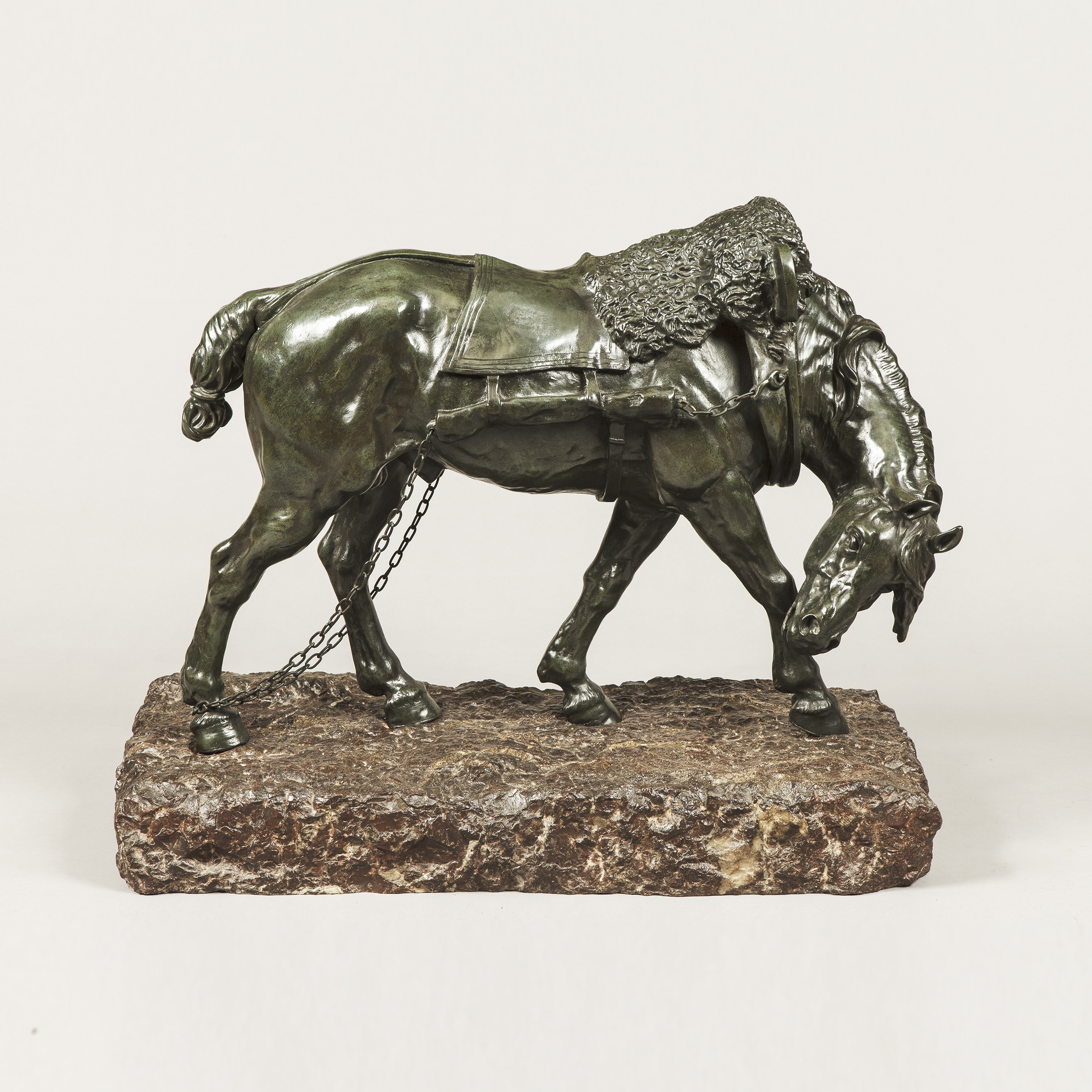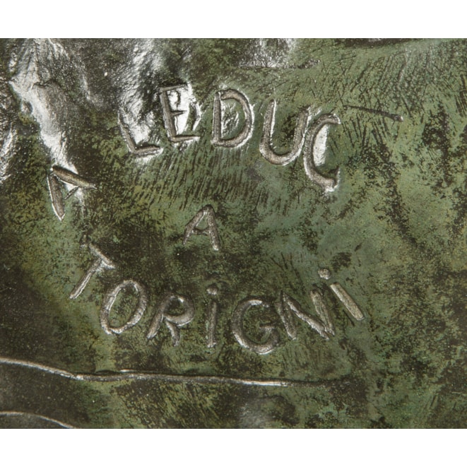 Arthur LeDuc was born in Torigni-sur Vire, in central Normandy; his training as a sculptor at the Le Nordez Ecole des Beaux Arts under Barye was interrupted by the Franco –Prussian war of 1870, in which he served in the Calvados division of the French Army with distinction. Larousse notes ‘ he was a ‘man of horses’ above all else’, and the noted animalier Fremiet commented to LeDuc, ‘I wish I knew horses as you do!’. Winner of numerous medals in the French Salon, and Expositions Universelles, he was a founder member of the Societe Nationale des Beaux Arts; elected to the Legion d’Honneur in 1906, and serving as Mayor of Asnieres-en-Bessin between 1893 and 1918.