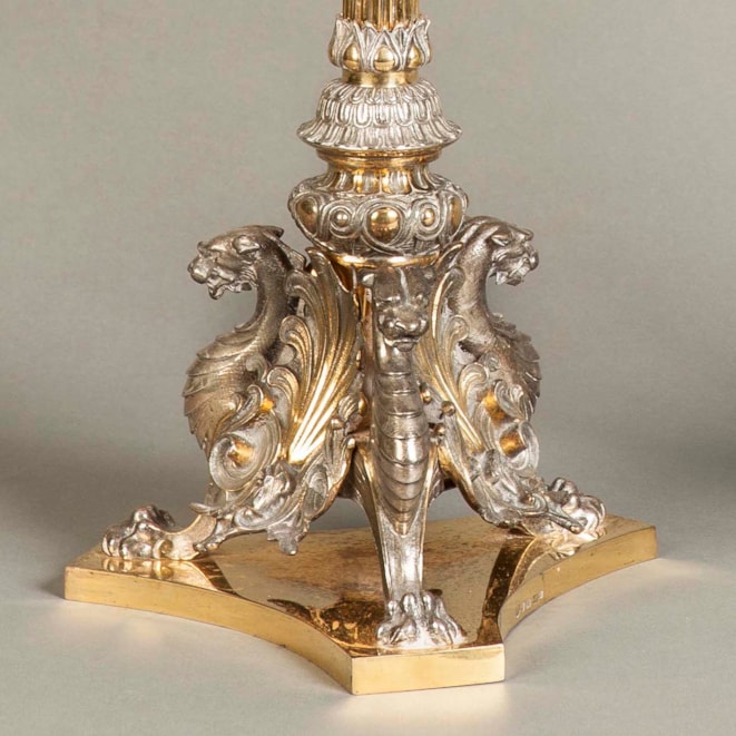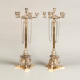 A Pair of Plated and Parcel Gilt Candelabra by Elkington and Co