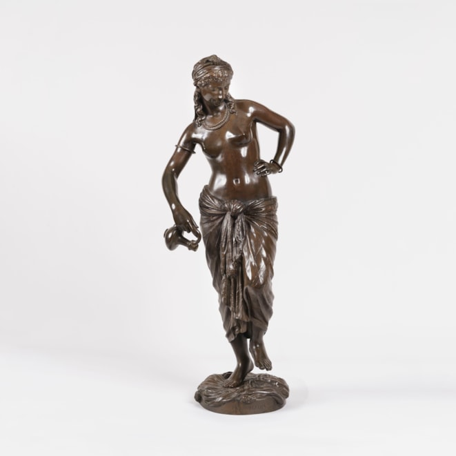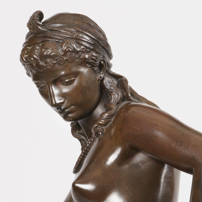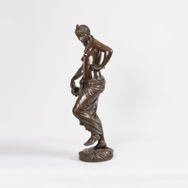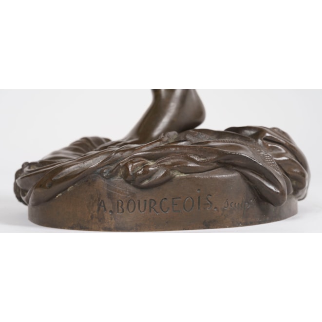 Born in Dijon in 1838, Baron Charles Arthur Bourgeois (1838-1886) entered the École des Beaux Arts in 1857 where he was a student of Duret and Guillaume. He was awarded the Prix de Rome in 1863, was a member of the Societe des Artistes Français, and exhibited at the Universelle Exposition of 1878.