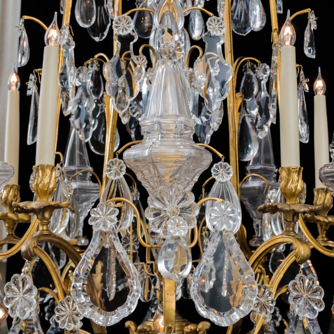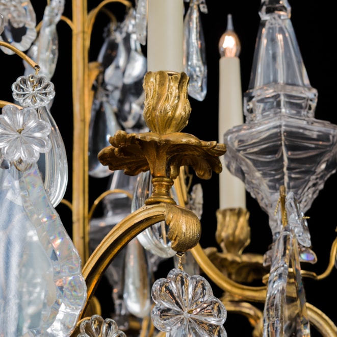 A Magnificent Pair of Louis XV Style Ormolu & Crystal Girandoles Probably by Baccarat