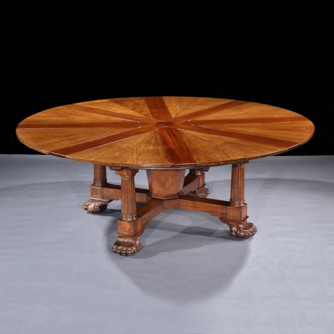A Very Rare 'Jupe's' Extensible Mechanical Action Circular Dining Table By Maple & Co