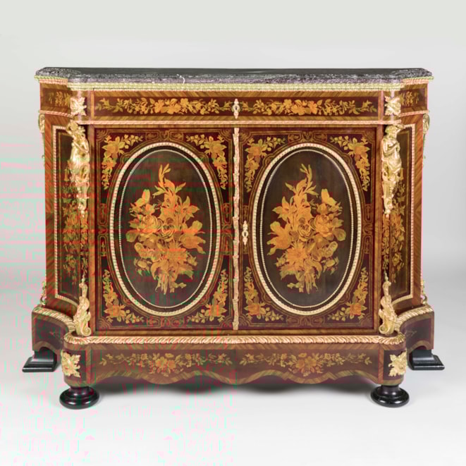 Joseph Cremer (1811-1878) was being born of French parents in Luxembourg in 1811, of French parentage, and active in Paris between 1839 and 1878, when the business was given to his son Thomas. He is recorded as supplying in 1844 a cabinet to King Louis-Philippe for his Normandy summer residence, the Chateau d'Eu at a cost of 3,500 francs. Cremer exhibited at the 1849 Paris exhibition, the Crystal Palace Exhibition of 1851, the 1855 Paris Exposition, at which the jurors commented 'In taste and design, he has achieved the impossible in balancing harmony with accuracy (of execution).' He also exhibited at the 1862 London Exhibition.