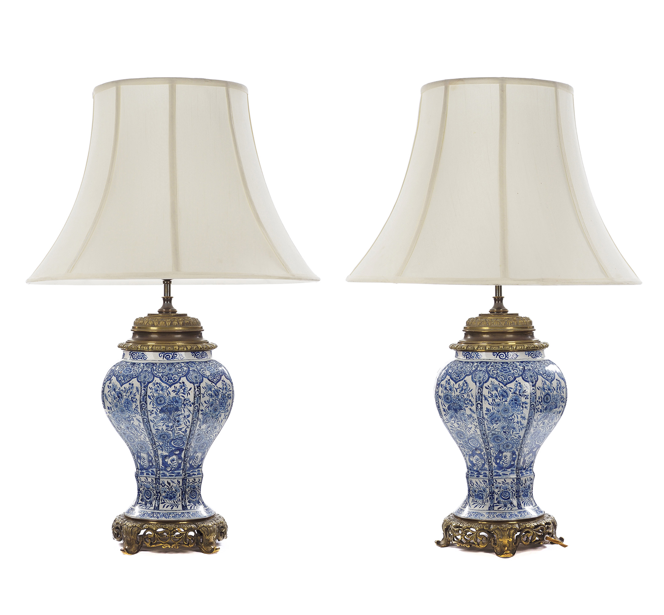 A Pair of Dutch Delft Porcelain Vase Lamps