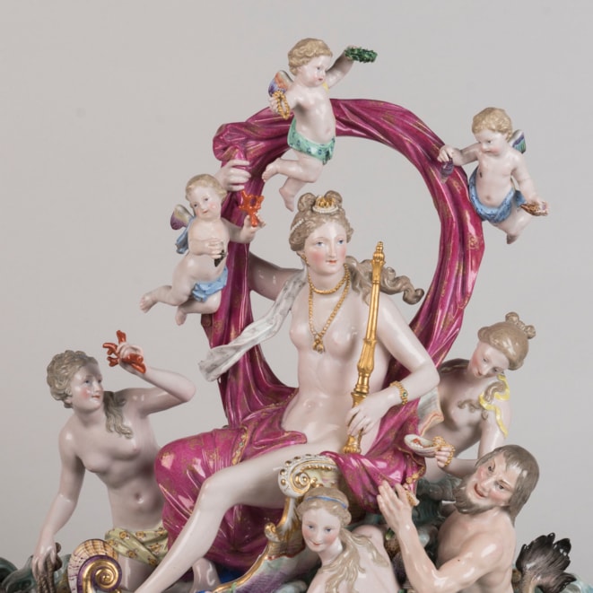 This figural group is one of the biggest and most articulate produced by the Meissen factory in the XIX century.