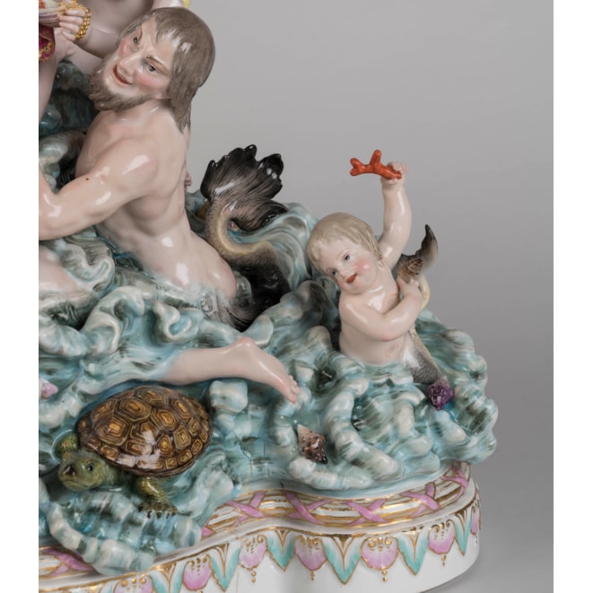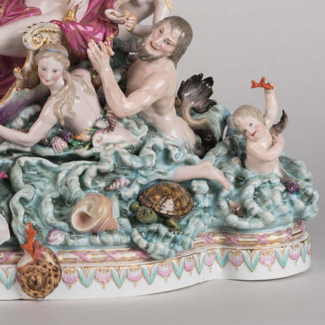 A large and finely decorated Meissen porcelain group of "The Triumph of Galatea", Saxony, (German), c. 1860-80.