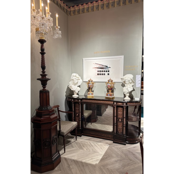 Our vases are a refined example of fashionable, elegant decoration at work: the ice cream pail was used in the setting up of the dessert display: ice in the bottom compartment would preserve the sherbet or cream in the top for a reasonable time so it could be served and celebrated, as it was a rare delicacy.