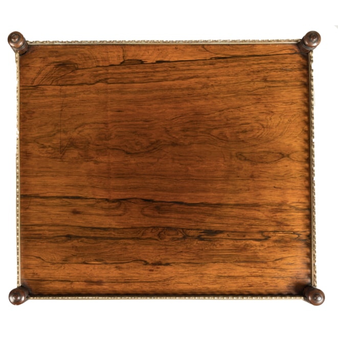 During the early 19th century, Rio rosewood was a highly prized exotic wood of high density and beautiful colour, with its dark swirls and figuring. It wasn't until 1808 that direct trade from (Portuguese) Brazil with England facilitated the import of Rosewood, and the Regency fashion for rosewood furniture really took off. After mahogany, it was the most widely used tropical wood in British cabinetmaking, despite costing nearly twice as much to import compared to the former (in 1819).