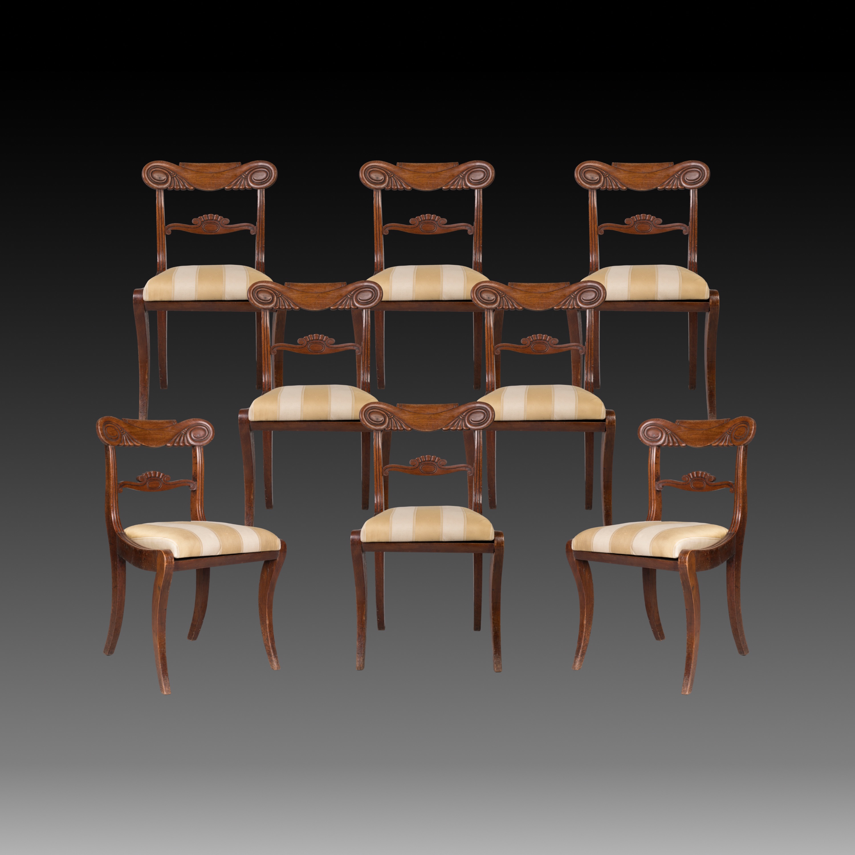 A Set of 8 Mahogany Carved Dining Chairs Of the William IV Period