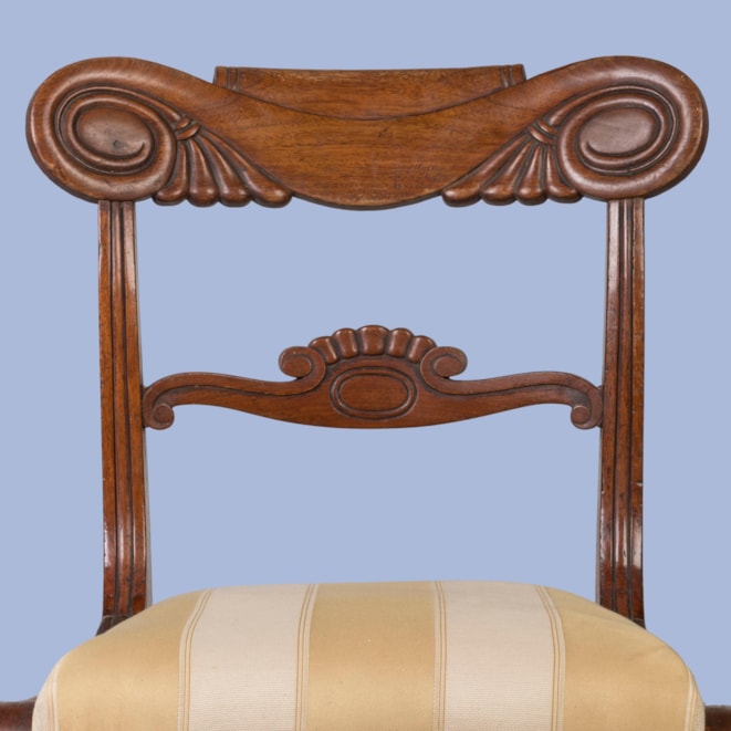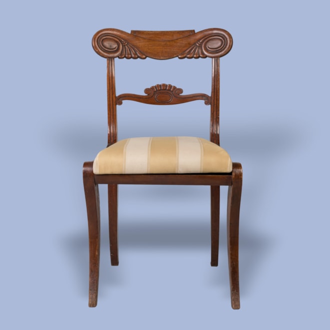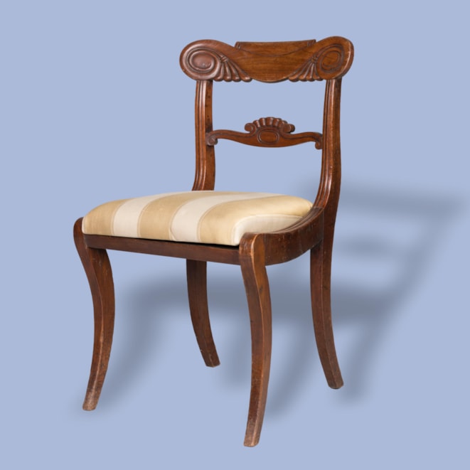 Sabre legs are mostly seen on English dining room furniture between 1800-1840. Owing to the difficulty in constructing a structurally strong and sound sabre leg chair, only the best chair makers produced this design.