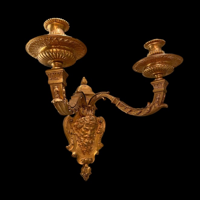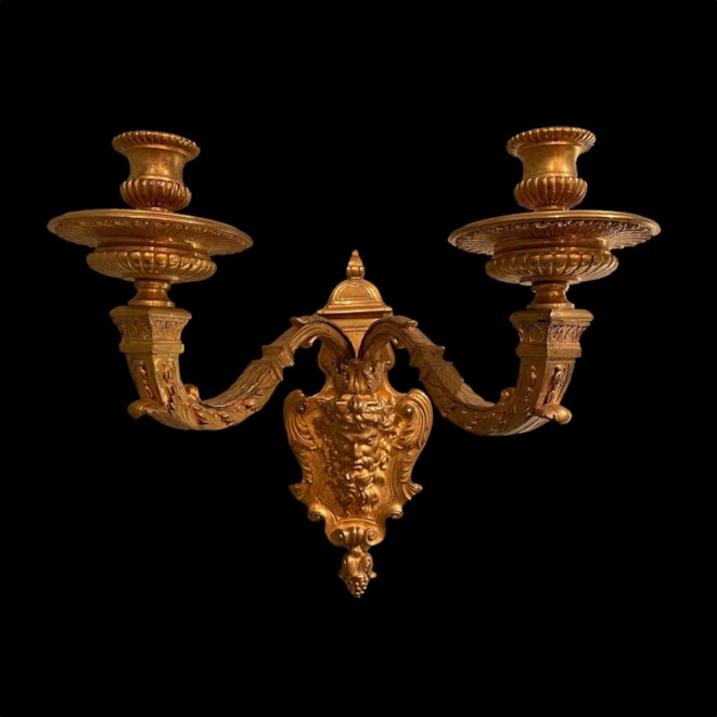 The Louvre Museum exhibits an eight light chandelier of virtually identical design to our wall lights, recorded in Jean-Pierre Samoyault's 1732 catalogue of the works of Boulle (Gilt Bronzes in the Louvre, Editions Faton, 2004, Dijon).