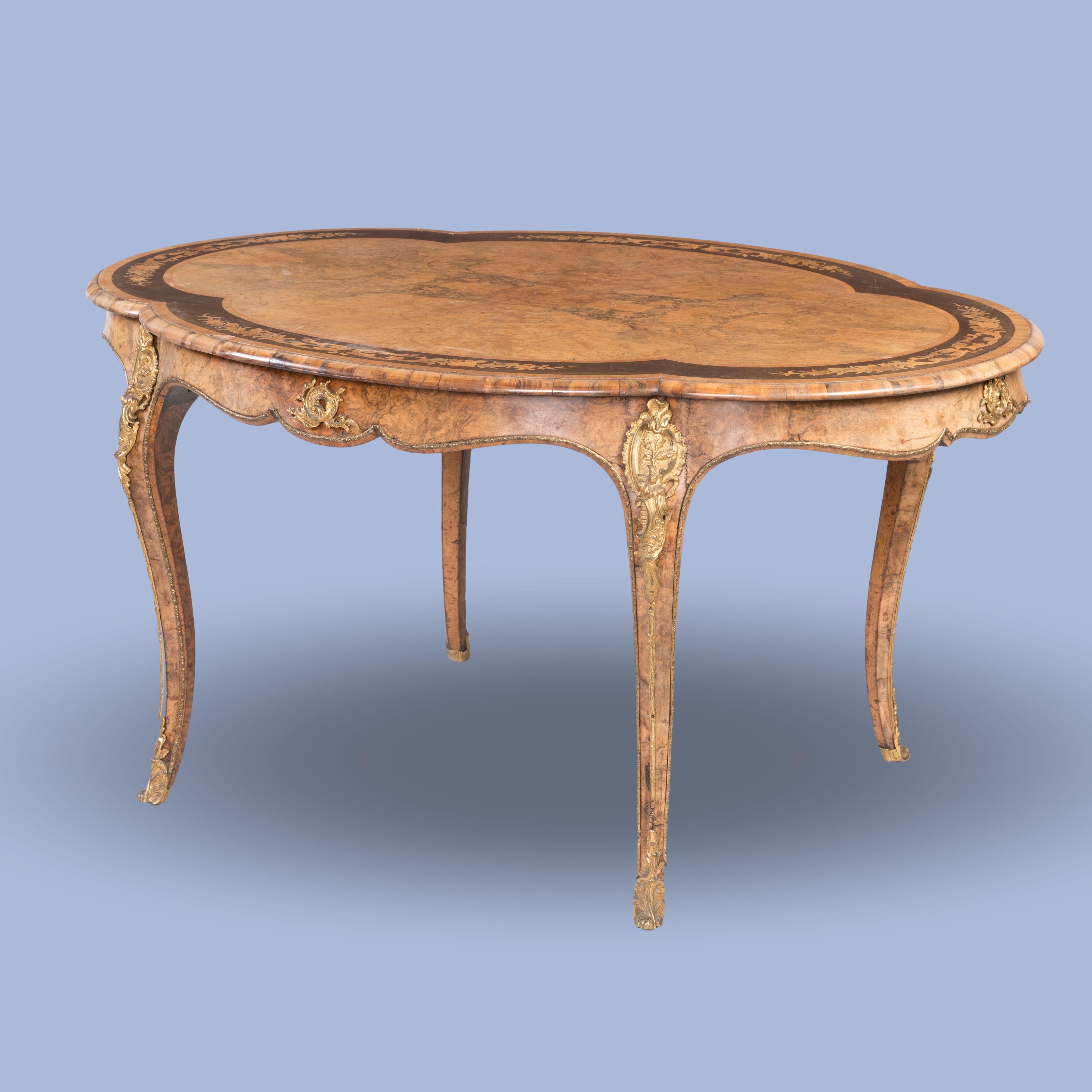 Several pieces sold by Butchoff Antiques, bearing the stamp of Gillow, exhibit many of the same qualities found in this table such as the figured walnut and the English ormolu typical of their mid-nineteenth century production.