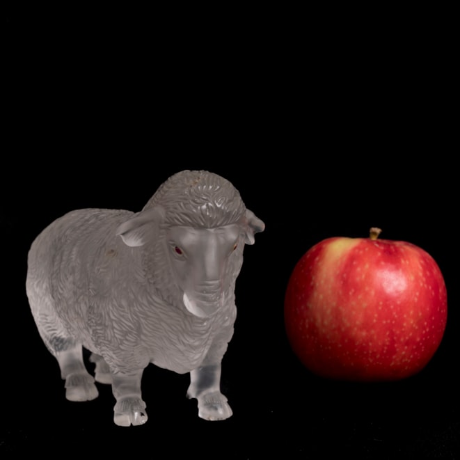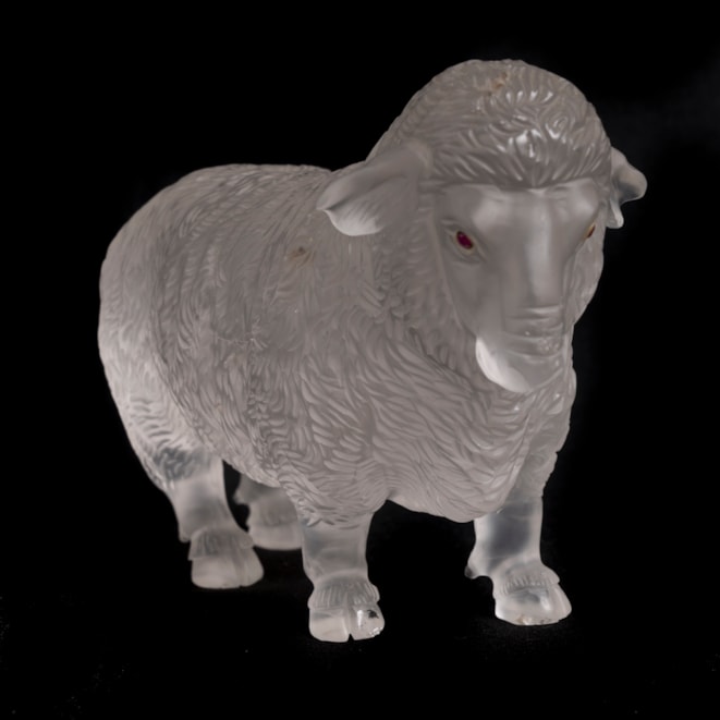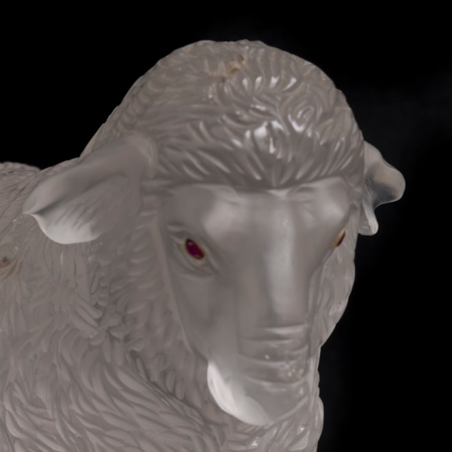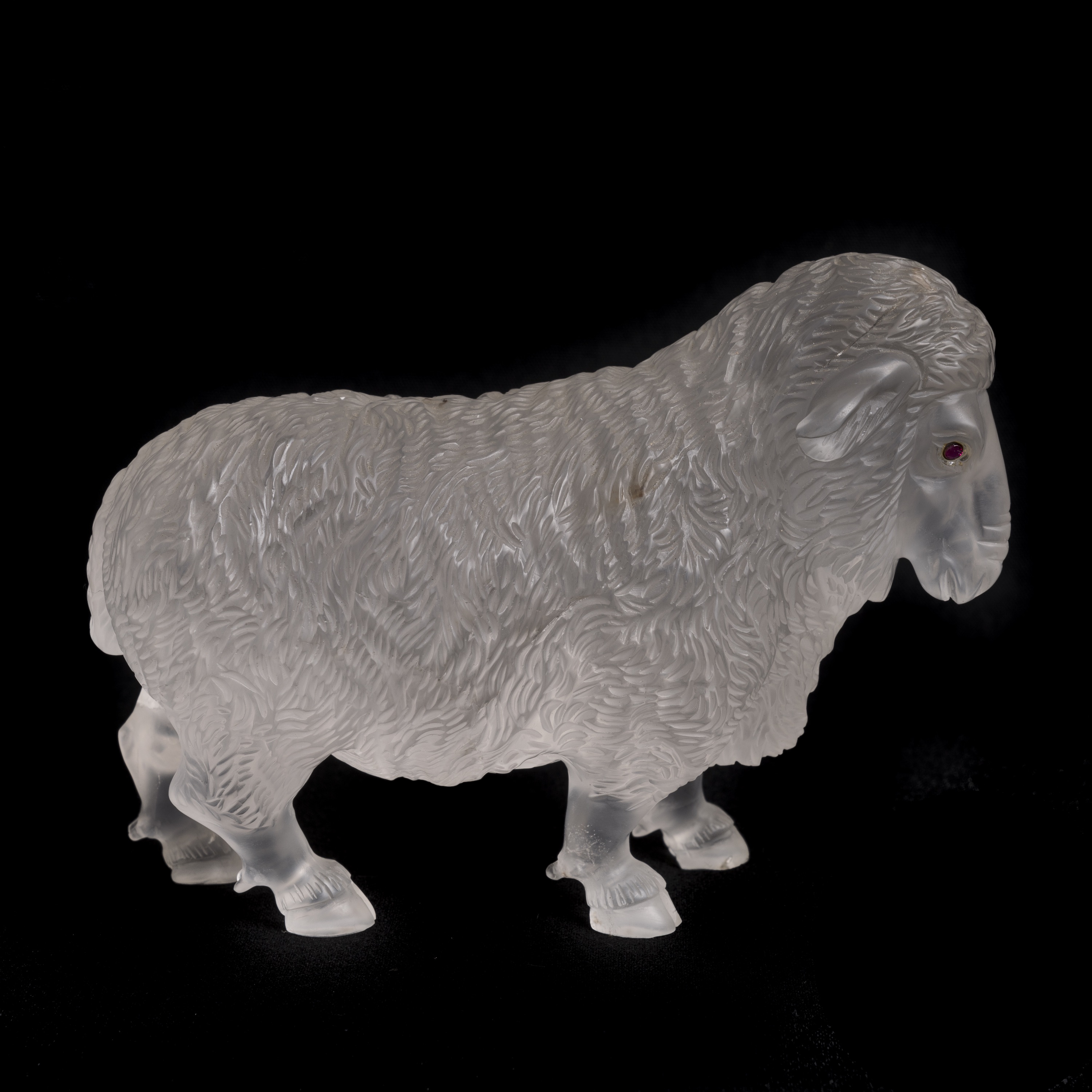 The standing lamb carved from a single piece of crystal, with inset eyes.