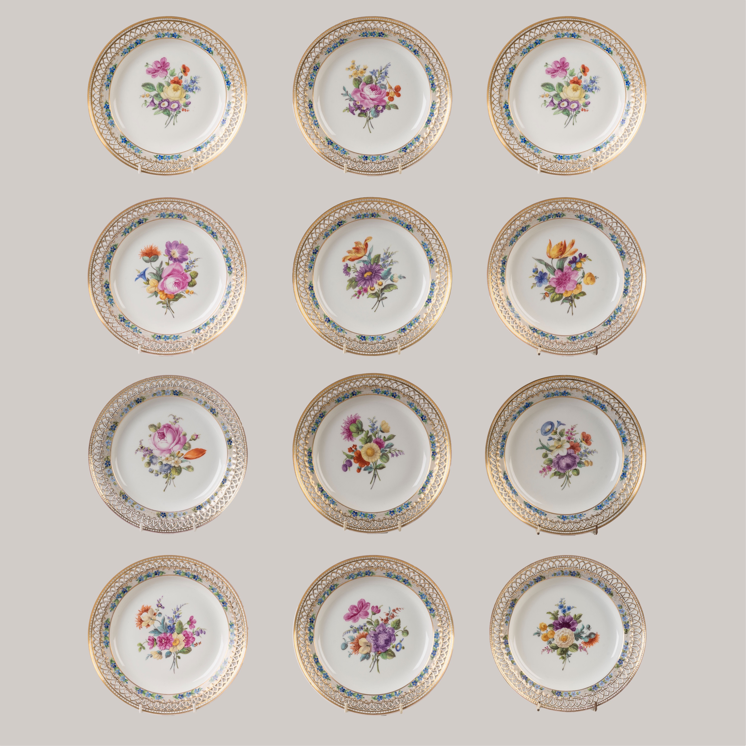 Set of 12 Reticulated Hand-Painted KPM Porcelain Plates