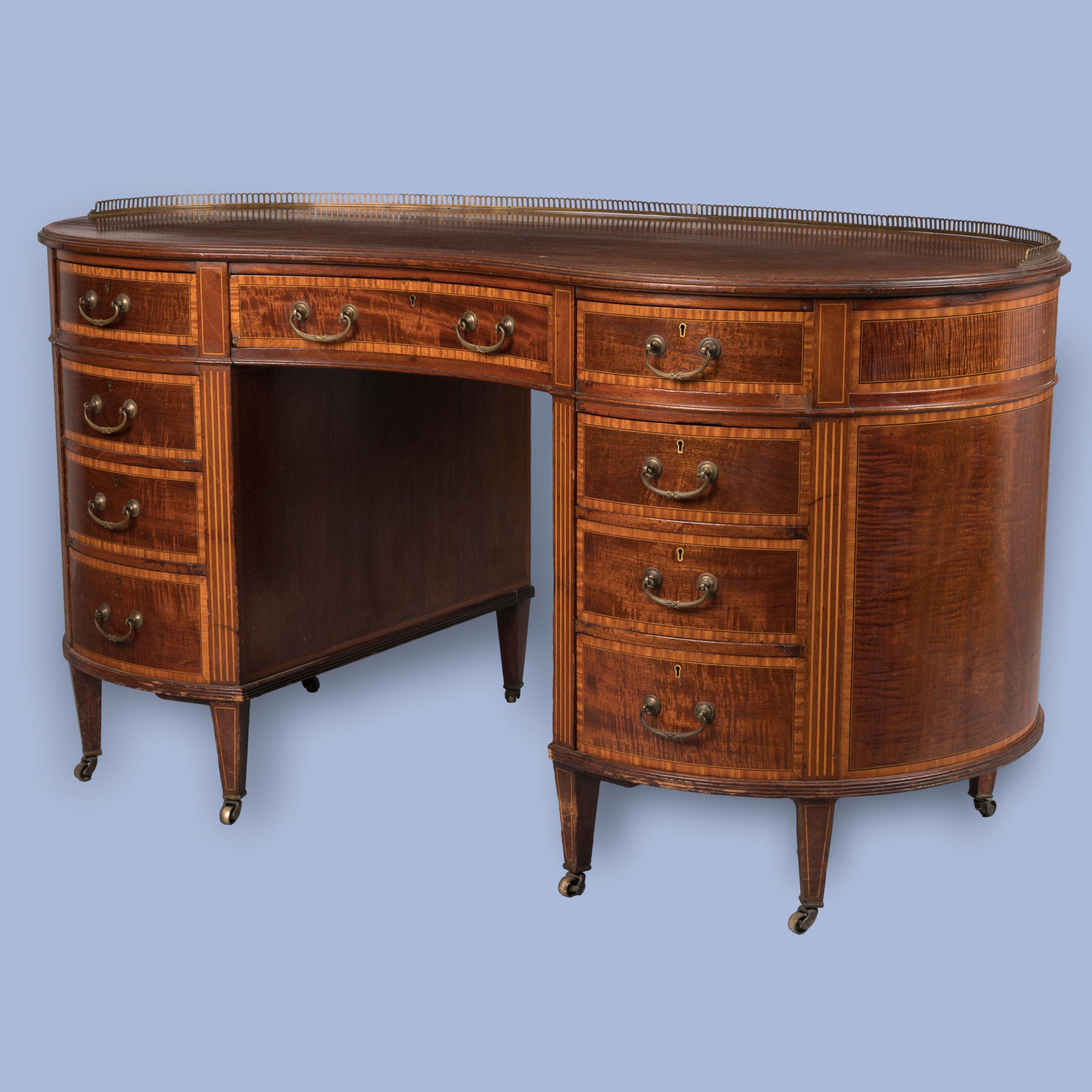 A Late 19th Century Mahogany Kidney-Shaped Desk