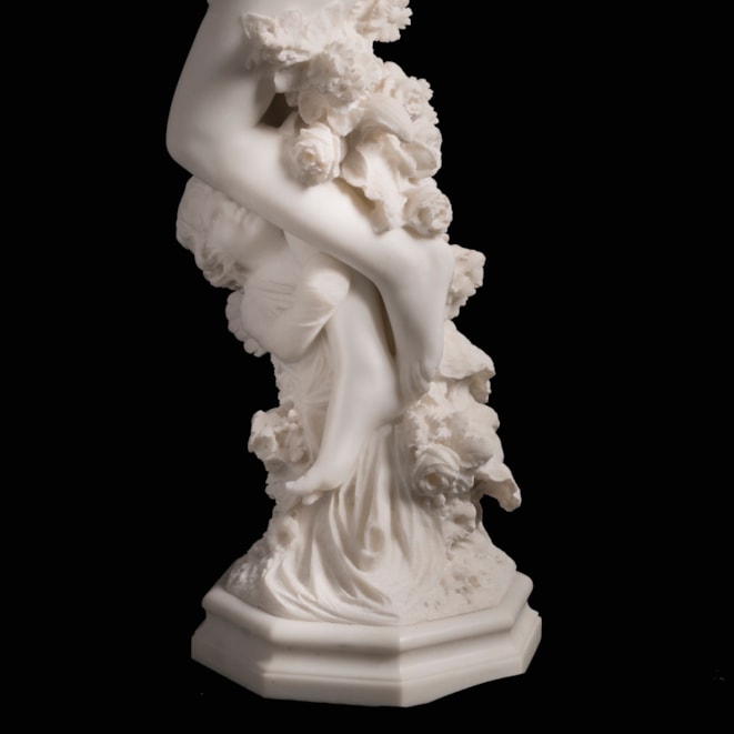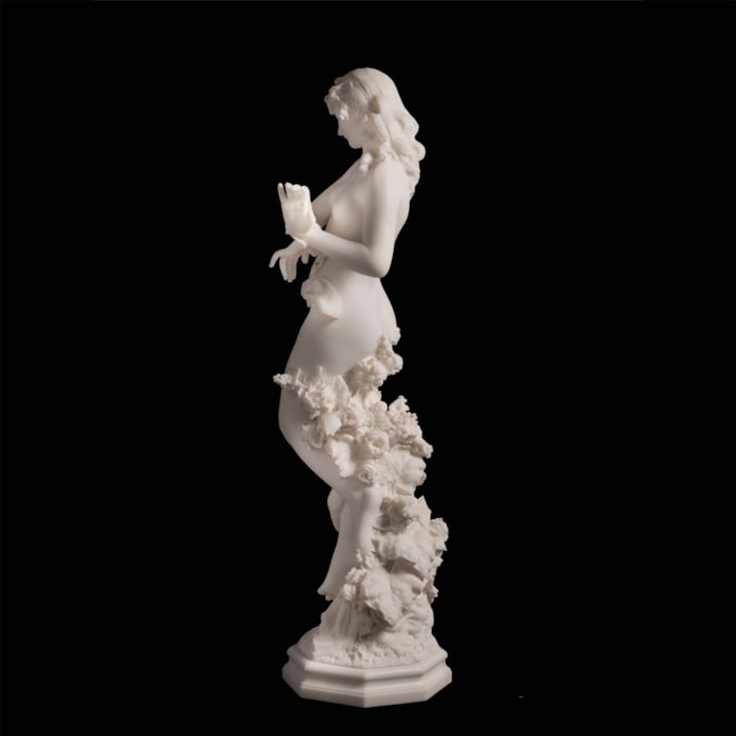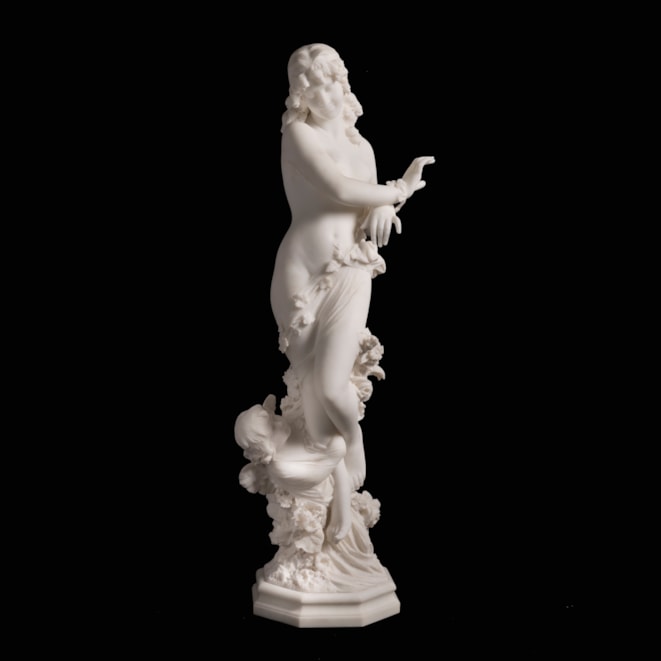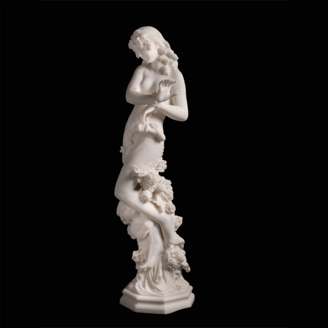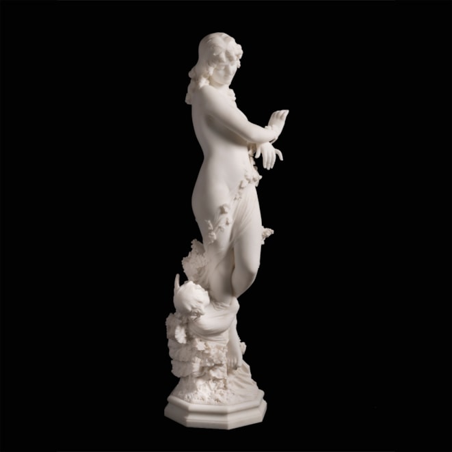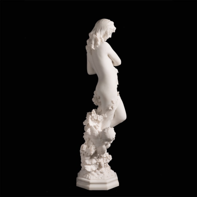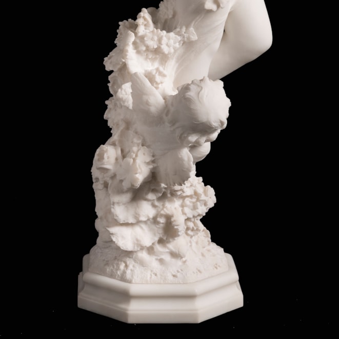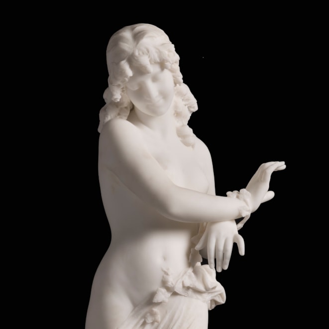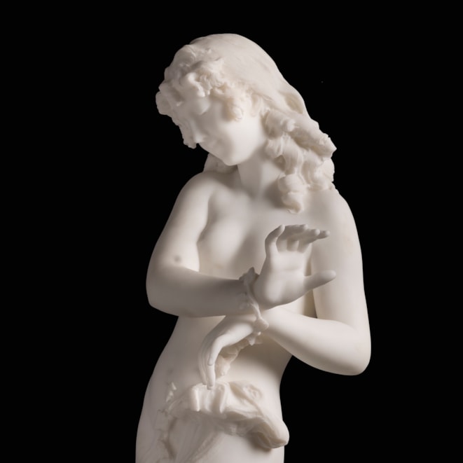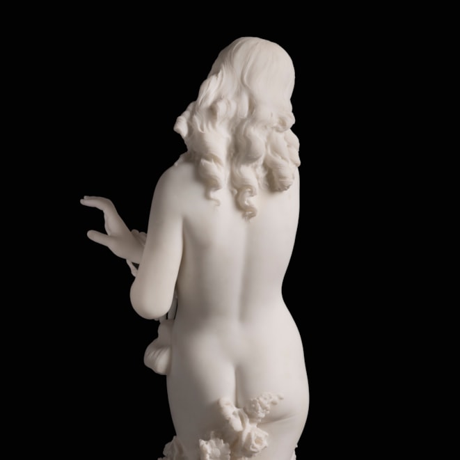 A celebrated sculptor of genre figures and groups, Cesare Lapini was born in Florence and enjoyed a successful career as a sculptor of busts and statues, especially of young women. Lapini exhibited six works at the Esposizione Generale Italiana in Turin in 1884, including 'Sorpresa', and exhibited in Rome in 1888. After his death, his successful workshop became the Galleria Lapini which was still operating in 1900, and exhibited an impressive number of statues at the Paris 1900 Exposition Universelle.