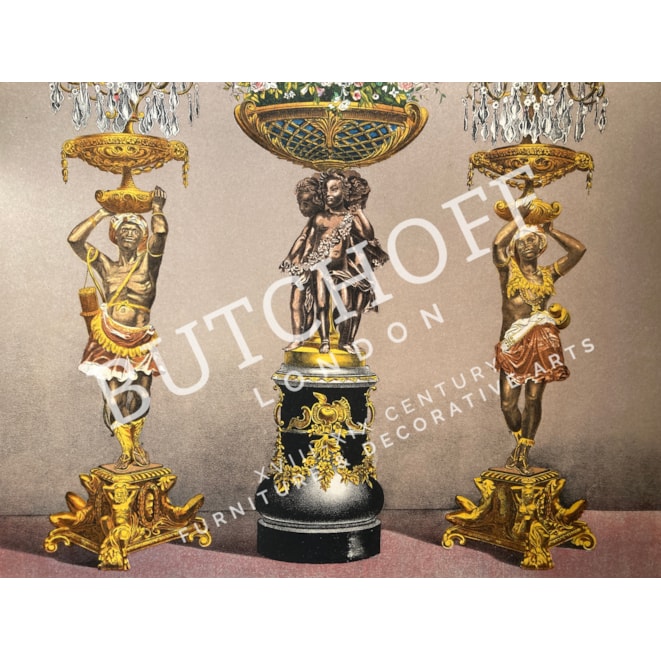 A nearly identical pair were exhibited by the bronzier Denière at the 1862 London International Exhibition, and illustrated in Waring's celebrated catalogue 'Masterpieces of Industrial Art & Sculpture" on plate 276.
