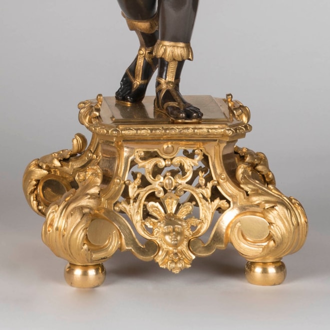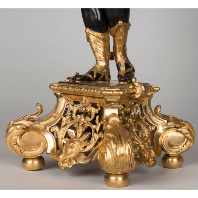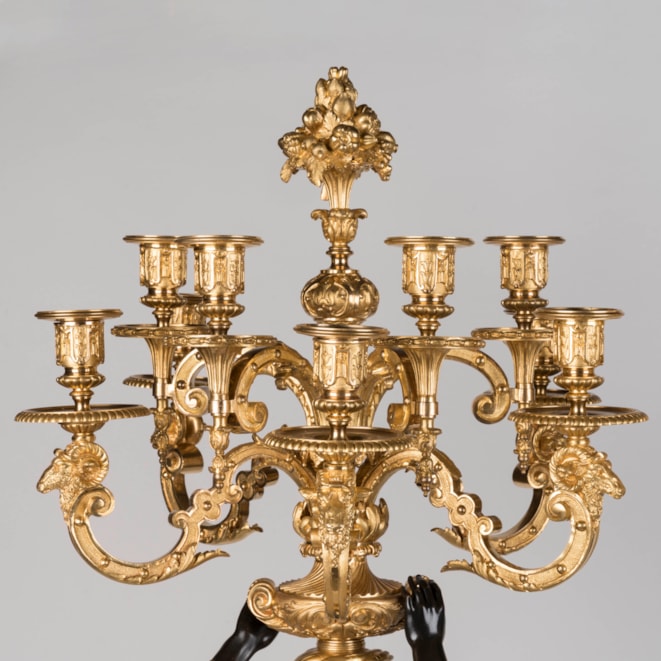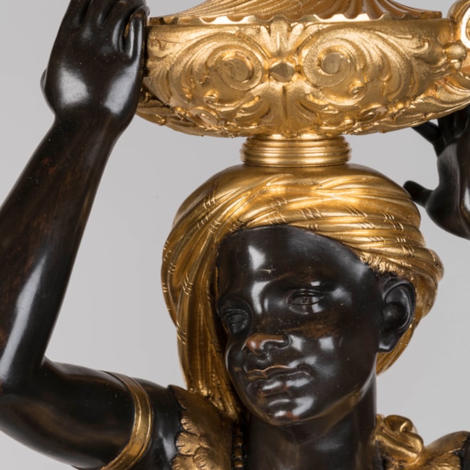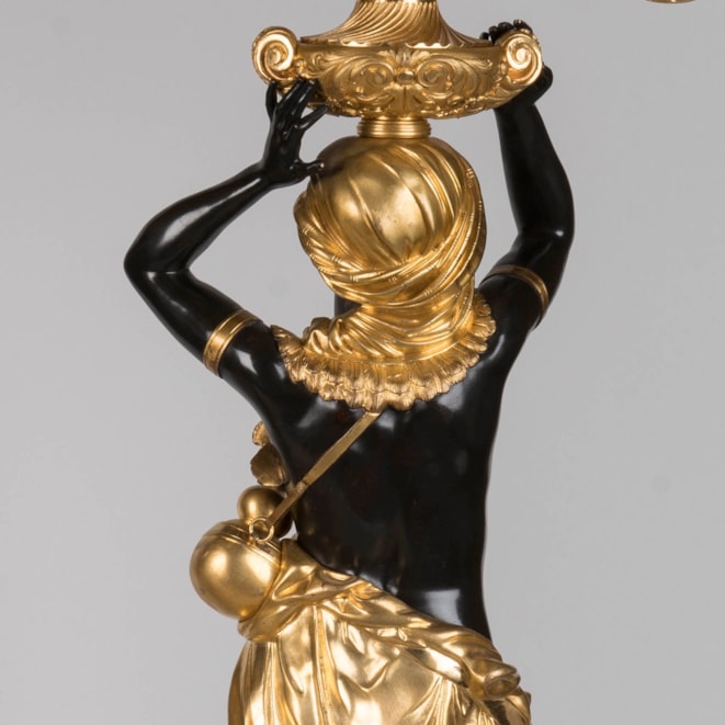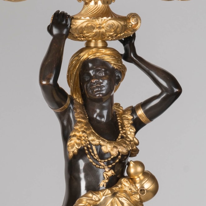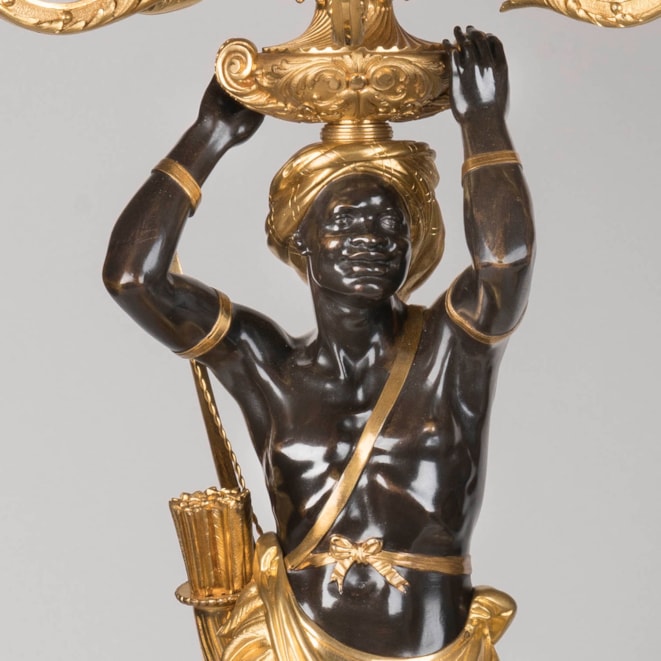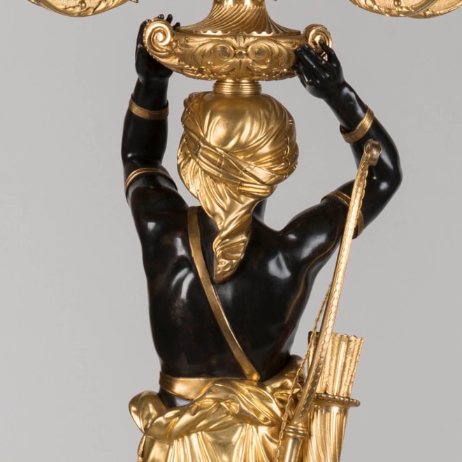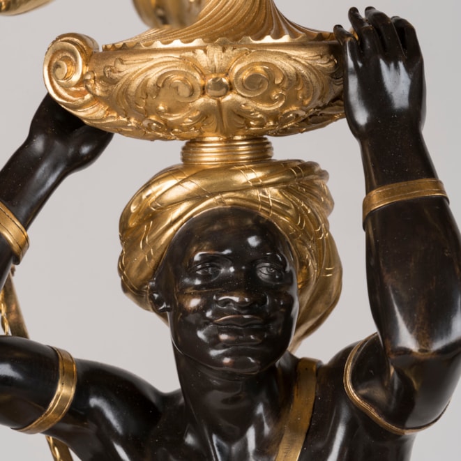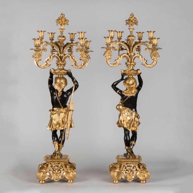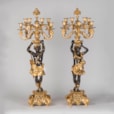 An Important Pair of Patinated & Gilt bronze Figural Candelabra