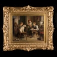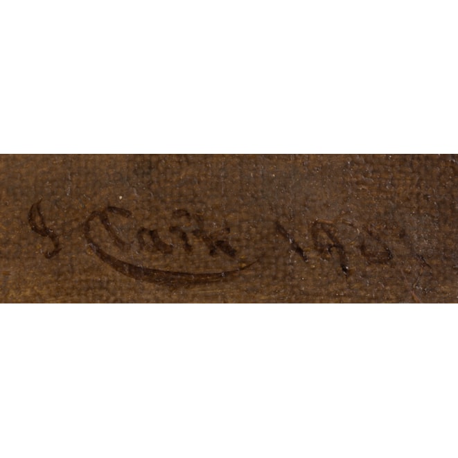 Listed in Benezit's famous dictionary of artists, the Dorset-born Joseph Clark studied painting under J.M. Leigh, the sole disciple of the celebrated classical painter William Etty, RA. From 1857 onwards, he was a regular exhibitor at the Royal Academy, and he likewise participated in several international World Fairs, including Philadelphia in 1876 where he won a bronze medal.  His genre scenes often feature children and reflect on simple childhood pleasures. Admired in both Europe and America, London's Tate has two painting by Clark in their collection.