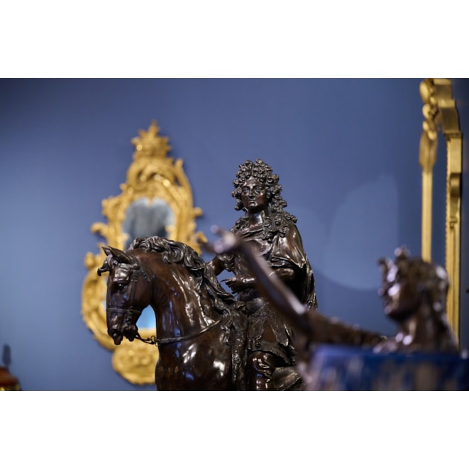 The original 7 metres high monumental statue of Louis XIV once stood in the Place Louis-le-Grand (now the Place Vendôme) weighting over 30 tons. It was destroyed in 1792 during the turmoil of the post revolution years, with only the left foot and a single finger preserved in the Louvre. A 19th century version by Henry Dasson is also in the Louvre, dated 1876.