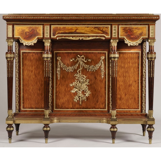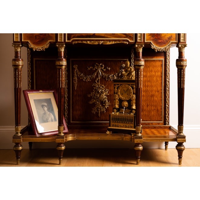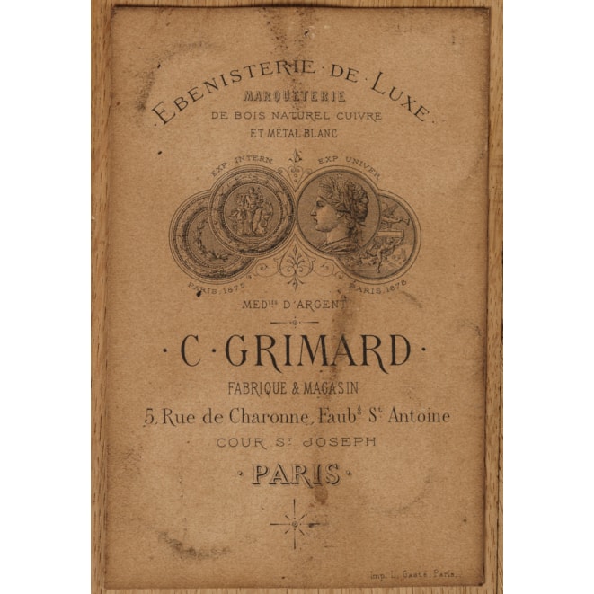 Maison Grimard is recorded to have produced fine 'Meubles d'Art' at 5 rue de Charonne in Paris in the second half of the nineteenth century. Grimard exhibited at many international fairs and exhibitions, including the Paris 1878 exposition universelle. Known for high quality furnishing, mainly in the Louis XVI and Neoclassical style, with finely chased ormolu mounts and often incorporating vernis martin style panels, his pieces rarely come up for sale and most remain in private collections. Like many of the other renown Parisian cabinet makers from the 19th century, Grimard's furnishings were exported to high-end markets and clients all over the world.