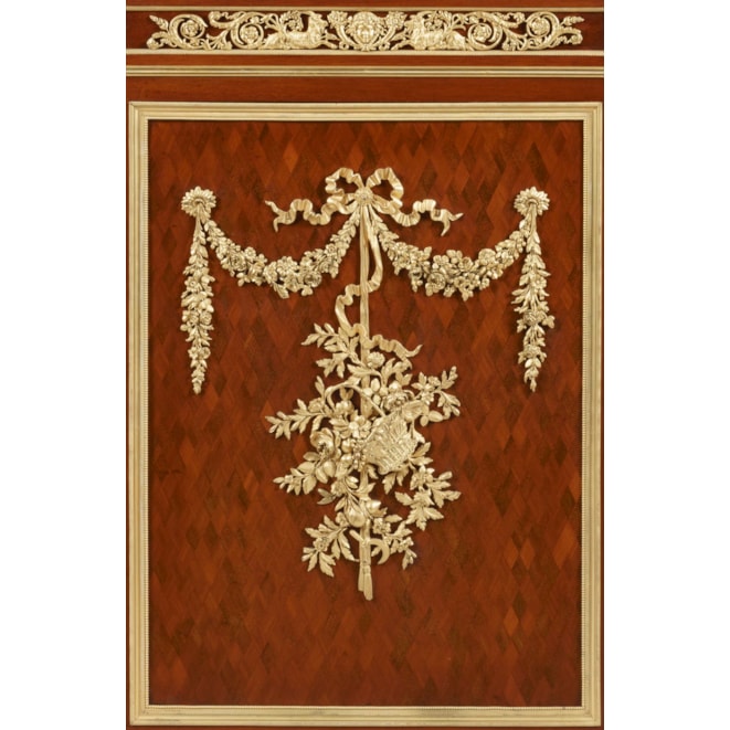 The ormolu bouquet on the central panel is a recurring motif of Linke's œuvre, perhaps most often associated with his largest private commission, the residences of the King of Egypt.