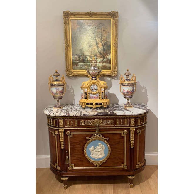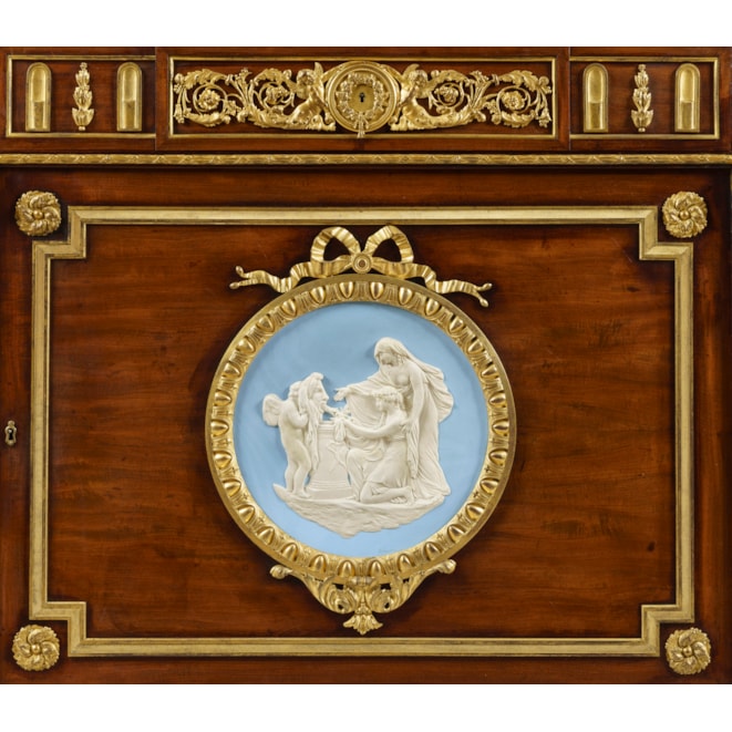 An Ormolu- and Wedgwood Jasperware-Mounted Mahogany