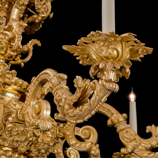 Related chandeliers are rare to come to the market, such as those form the Leverhulme Collection from Thornton Manor sold Sotheby's London 2001 and from the famous Safra Collection sold Sotheby's New York 2011.